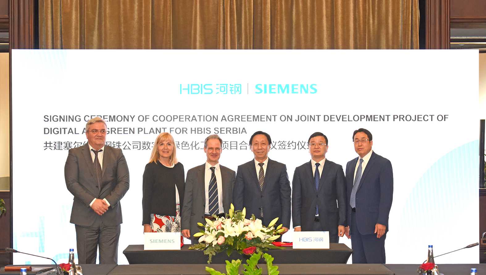 April 15, HBIS and Siemens signed an agreement to jointly build a digital green factory for HBIS Serbia, in Belgrade, a brand new joint venture of an intelligent green steel project in Serbia and making it one of most competitive steel mills in Europe. HBIS Chairman Yu Yong witnessed the signature of the agreement and HBIS Vice President Li Yiren, Siemens Advanta Global President Daniel Rui Felicio signed the agreement. Siemens China Senior Vice President, Advanta China General Management Jiang Chonglong attended the ceremony.