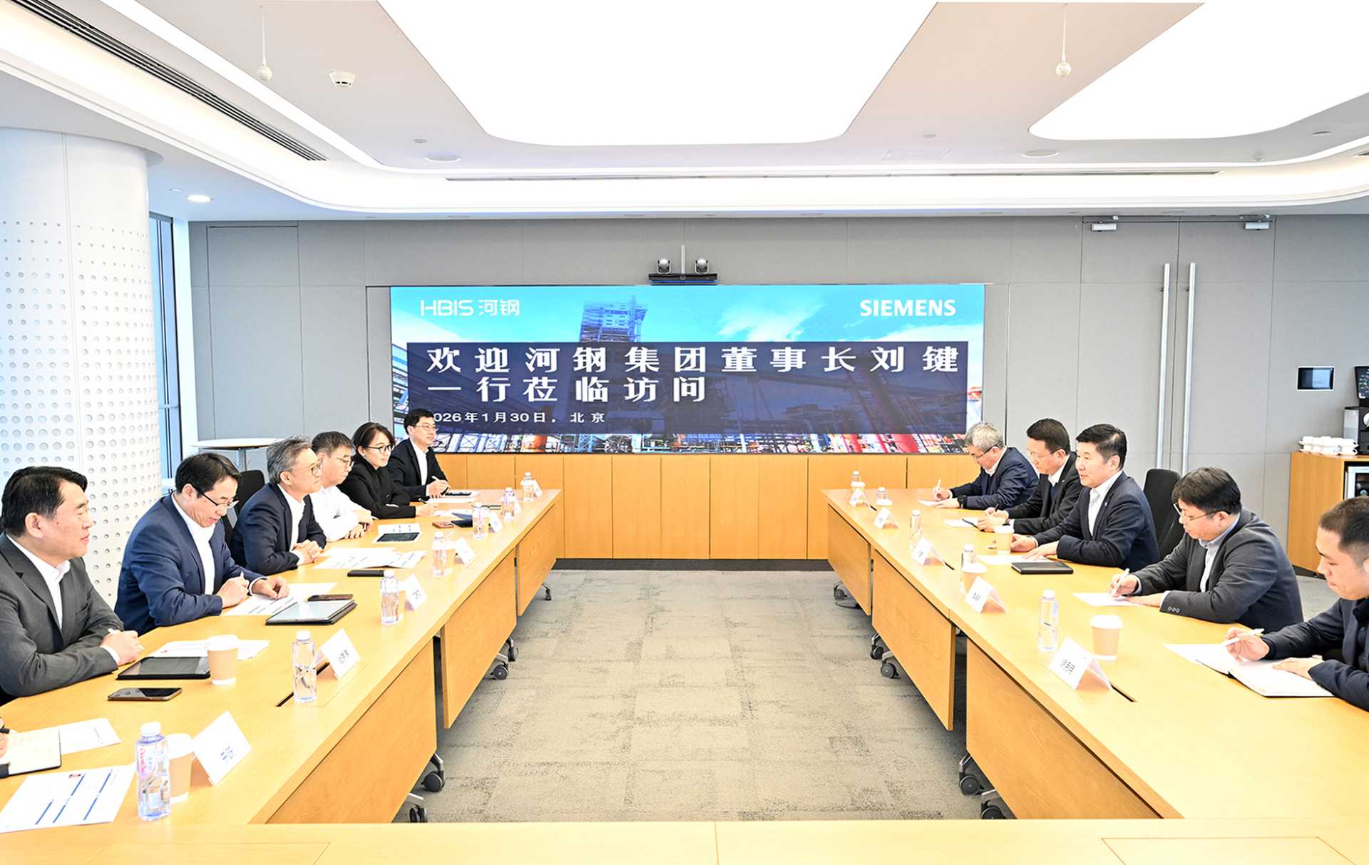 January 30, HBIS CPC and Group Chairman Liu Jian met Siemens Global Executive Vice President and Siemens Great China President and CEO Xiao Song in Beijing and discussed to deepen their strategic trust and push steel industry to high end, intelligent and green development.